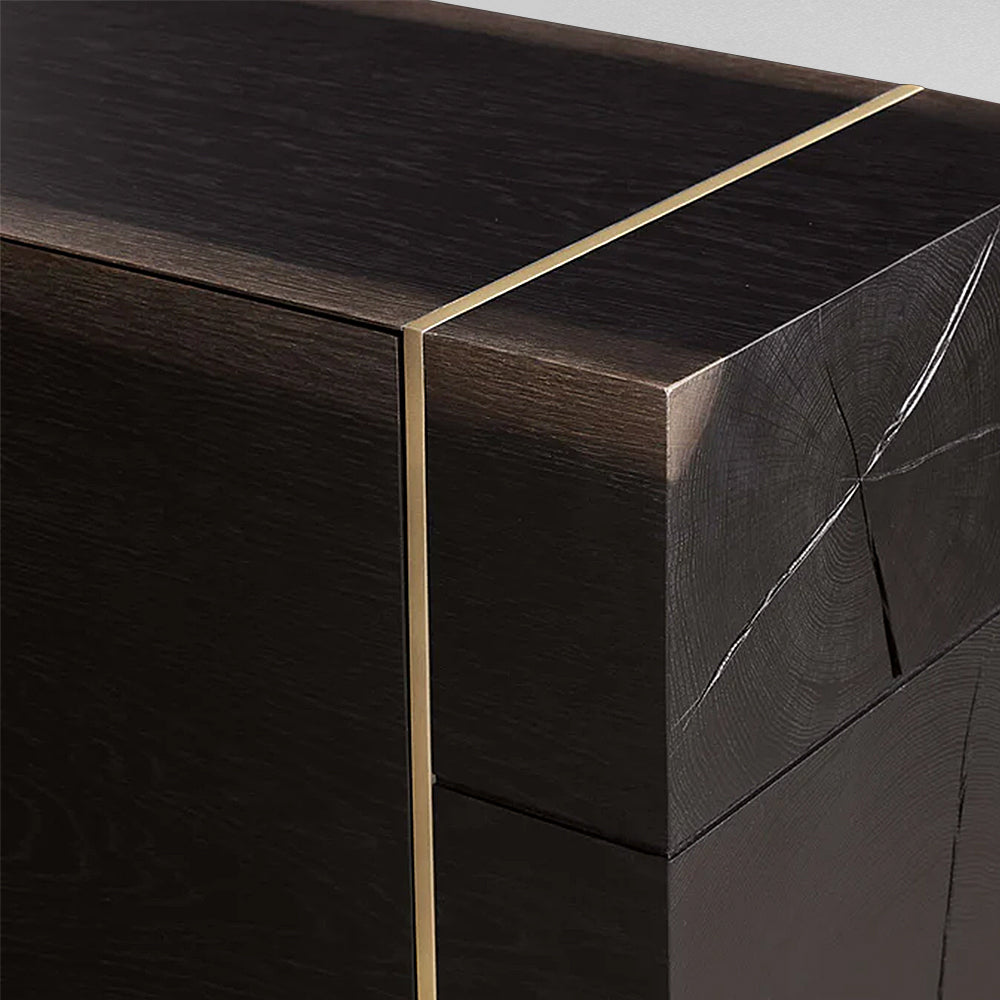 The Mihaela Series Sideboard features solid wood construction paired with sleek metal accents and a distinctive sculptural design, blending modern artistry with functional luxury. Ideal for upscale American dining rooms or living spaces, this statement piece balances refined aesthetics with ample storage capacity, elevating high-end interiors with a unique, sophisticated silhouette.