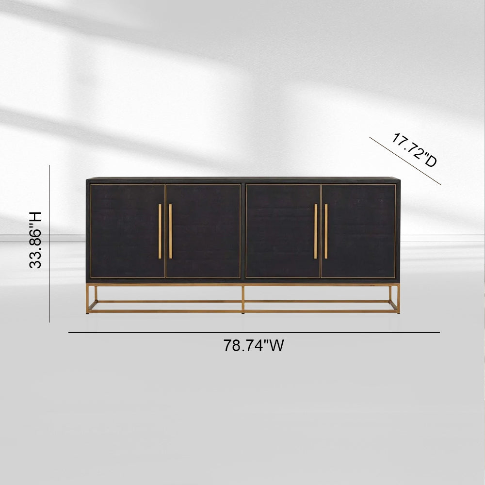 The Sebastian Sideboard combines sophisticated black wood, brass detailing, and a sleek metal frame to deliver a statement piece that is both elegant and functional. Perfect for upscale American dining rooms or living areas, it balances glamorous aesthetics with generous storage capacity, enhancing luxury interiors with subtle refinement.