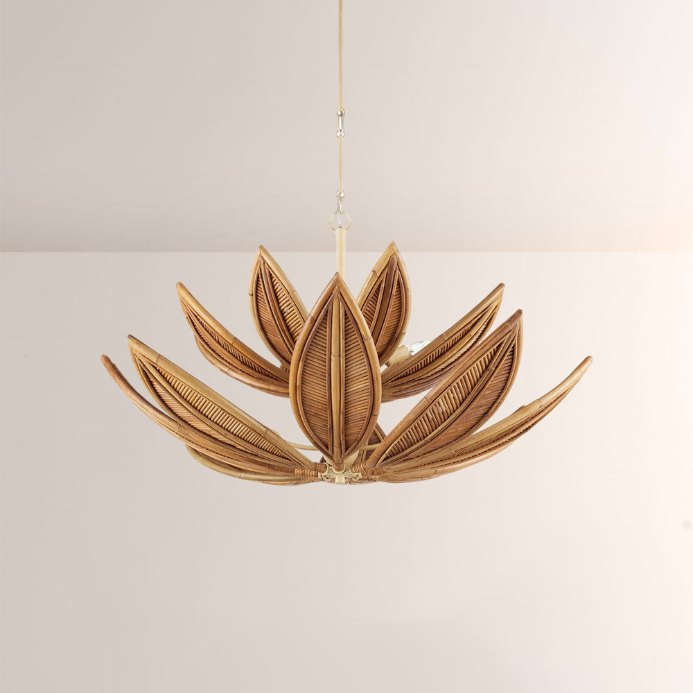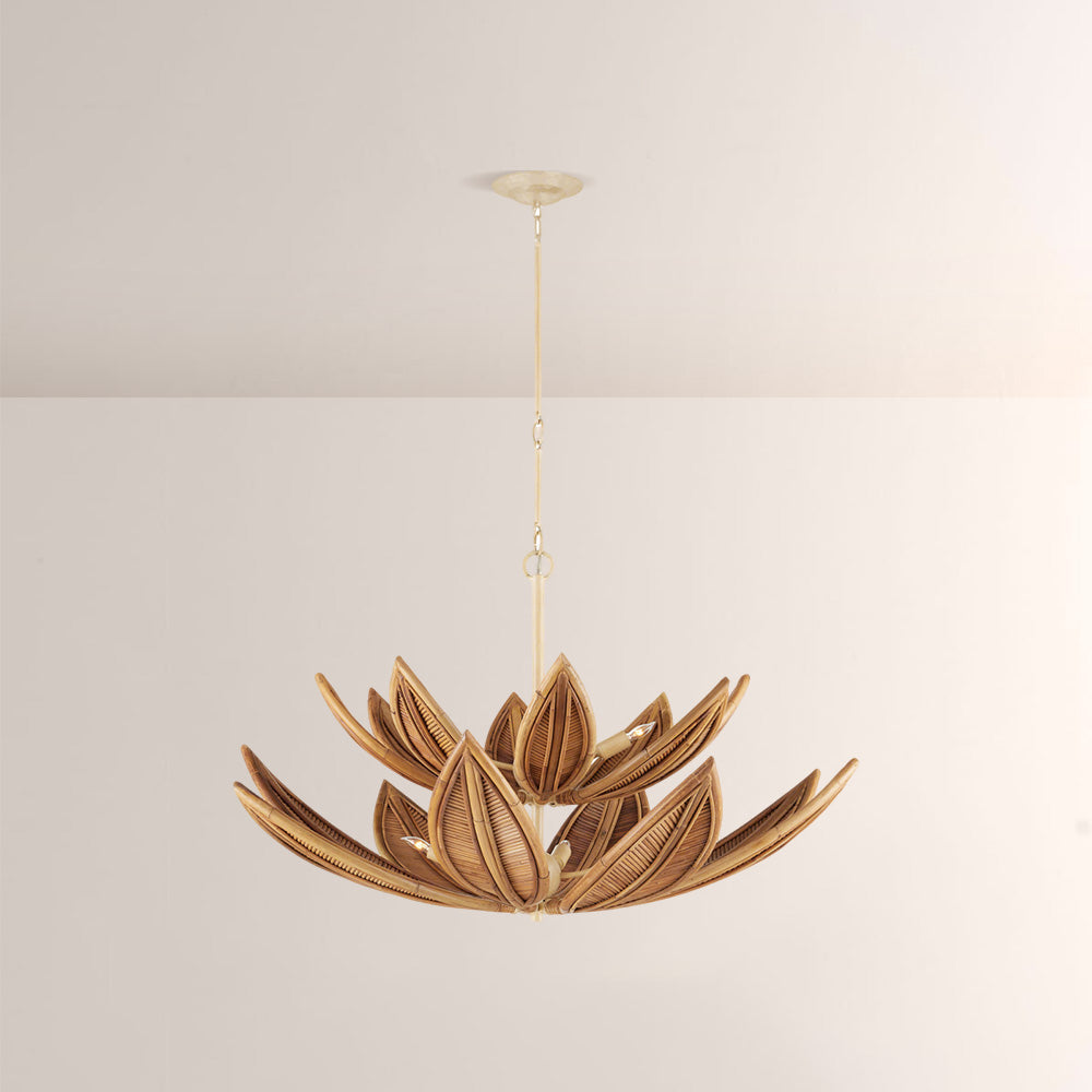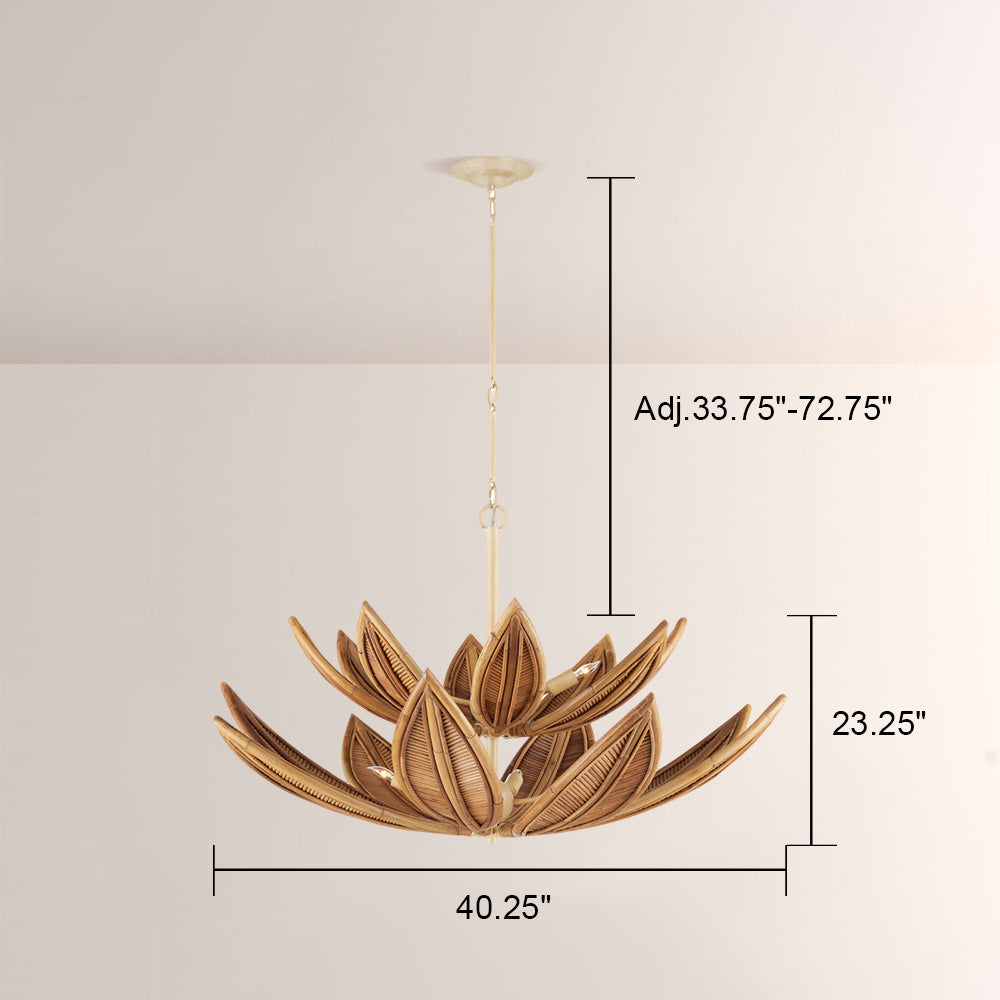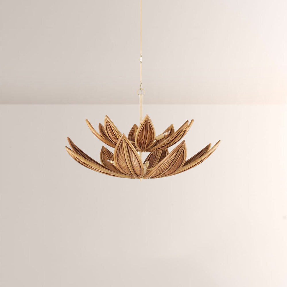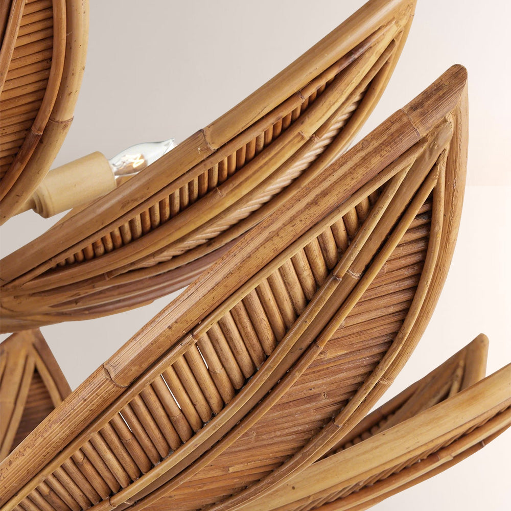 Tropical Grandeur Two-Tier Hand-Woven Rattan Leaf Chandelier