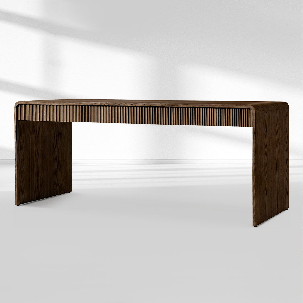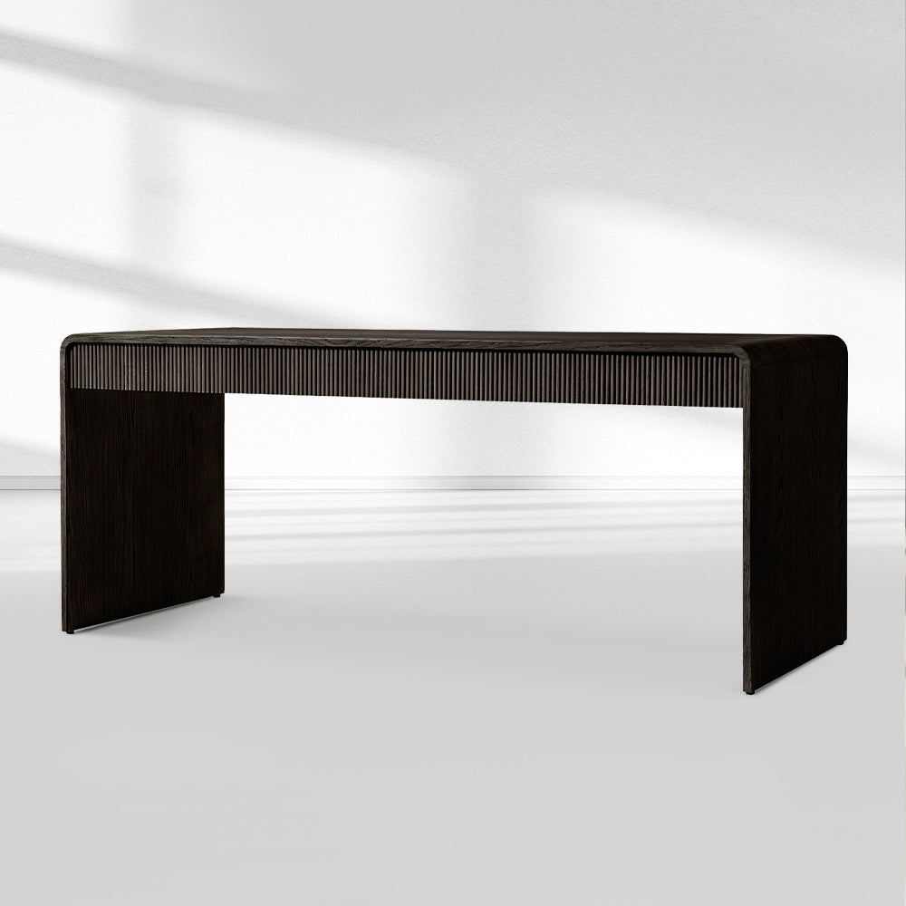 The Alora Fluted Front Desk fuses mid-century modern design with luxurious craftsmanship, featuring a sculptural pedestal base paired with premium stone tops in curated finishes. Perfect for upscale American dining rooms, its bold architectural presence and refined natural materials create a centerpiece that elevates interiors with timeless sophistication.