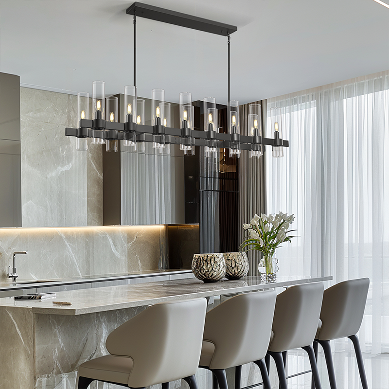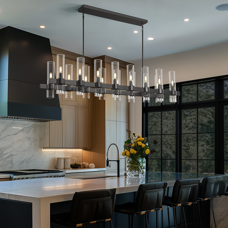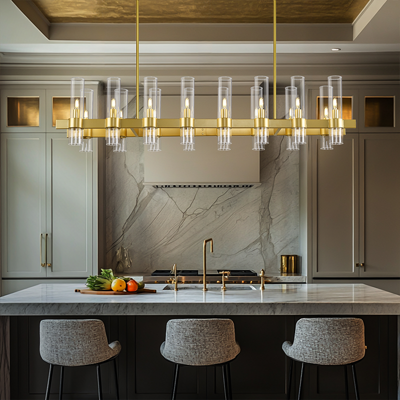 Hanging Height: The bottom of the chandelier should hang 30" - 36" above the countertopWhere to Hang: Center the chandelier in the middle of the island.