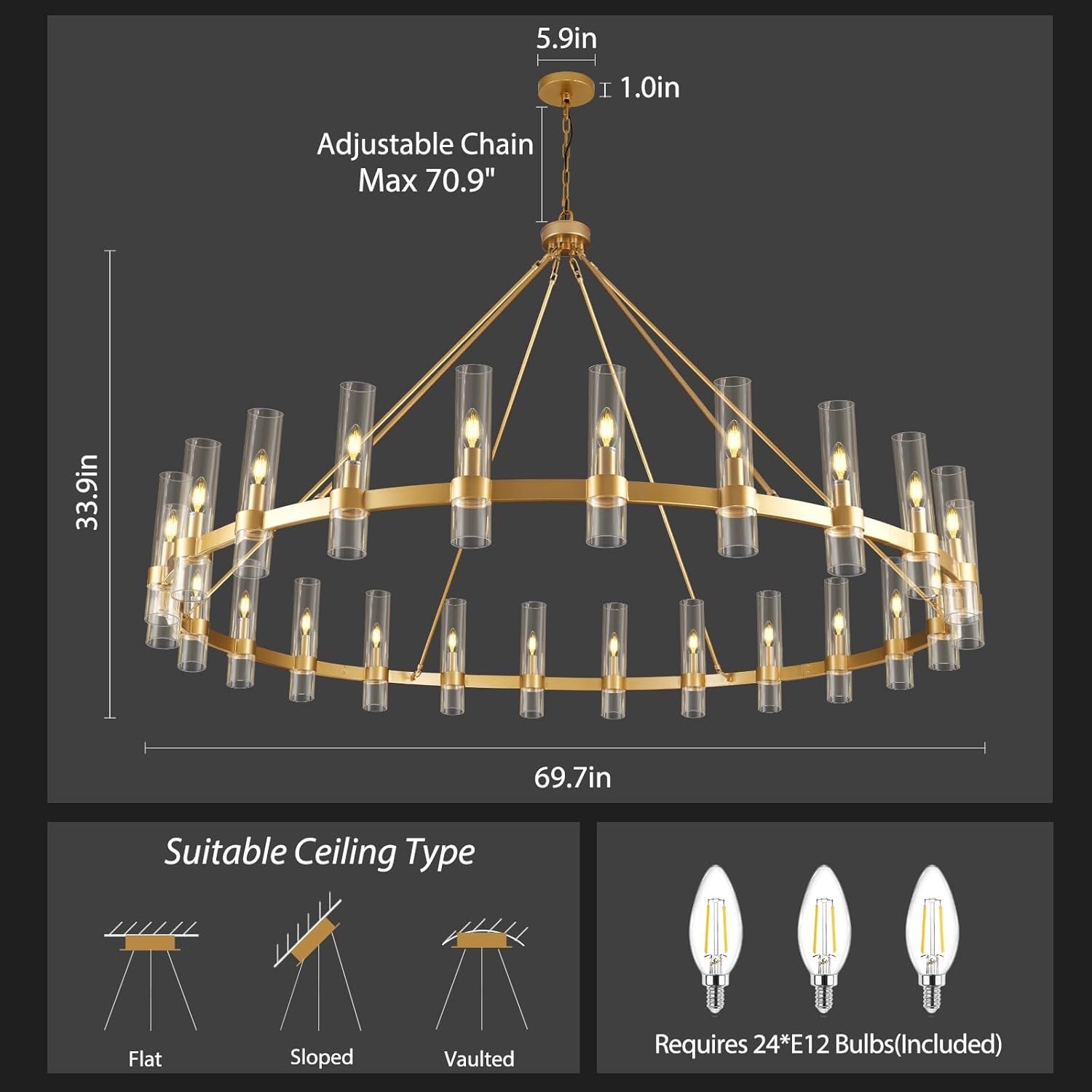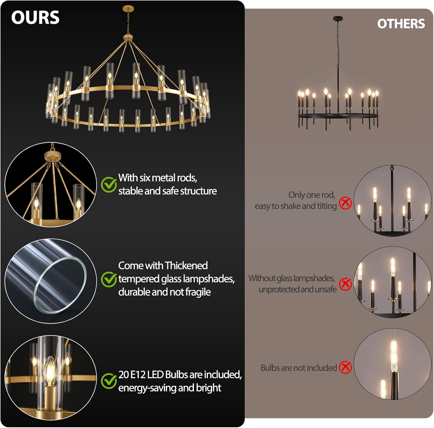 • Light Source: LED E12 Dimmable Bulbs