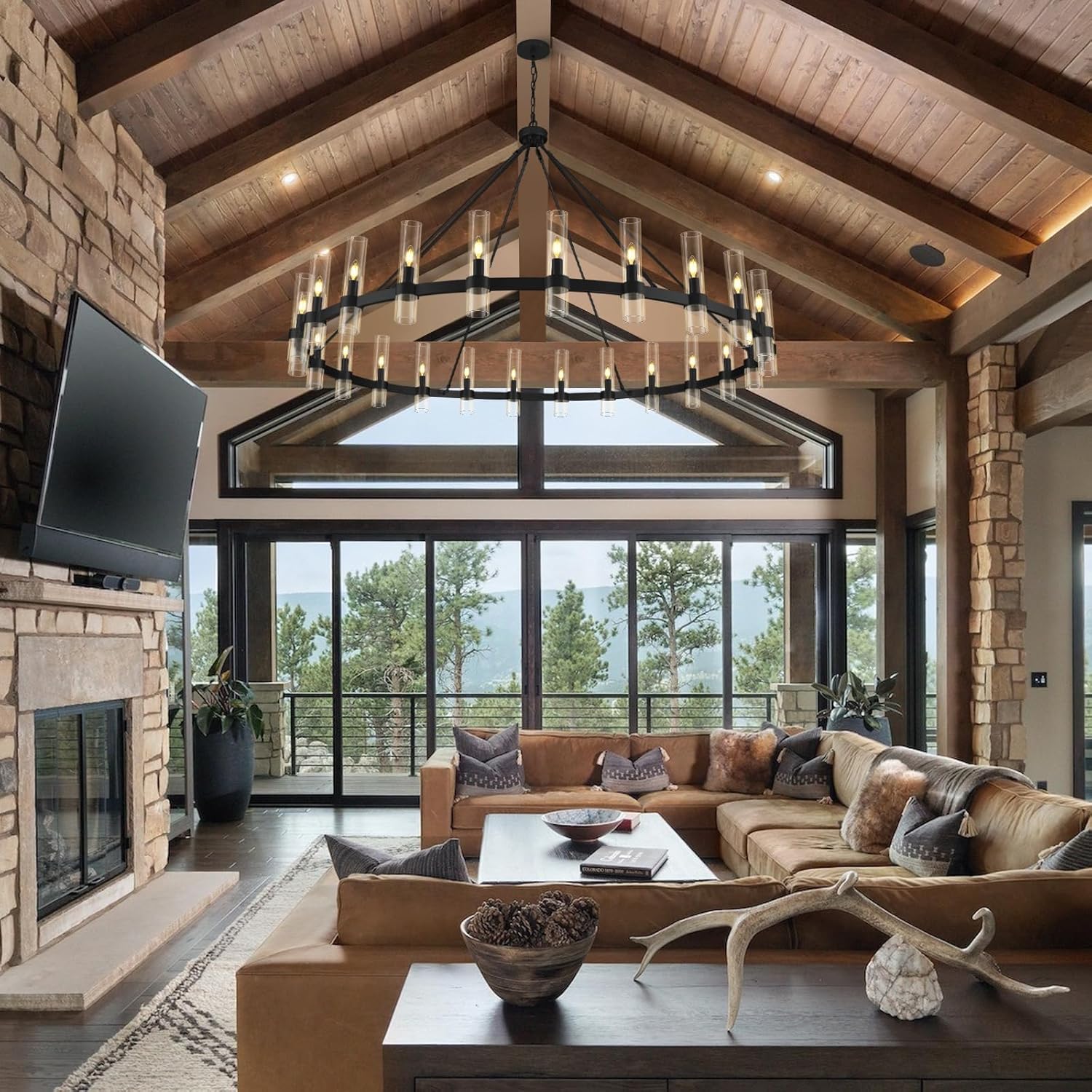 Wagon Wheel Glass Round 2-Tier Chandelier 60‘’