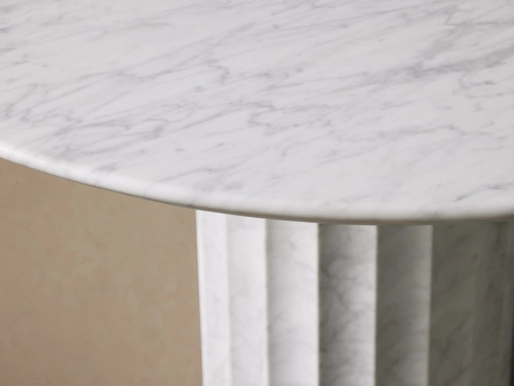 An exploration of line and form, our collection is inspired by the harmonious proportions and rhythmic curves of the human body. Each piece is adapted from a drawing practice, reinterpreting sketches as monolithic volumes of stone. Recessed tabletops feature a raised perimeter edge.