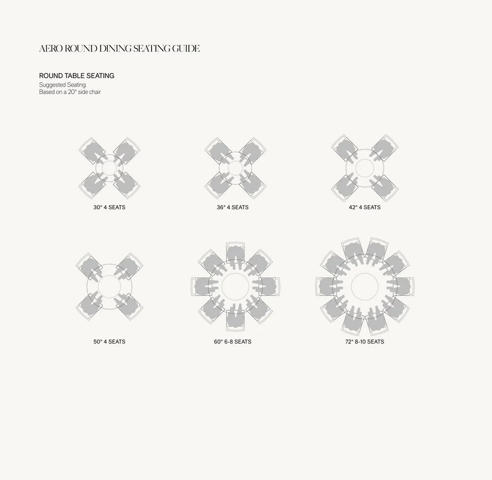 • 36" Table: 36" diam., 30"H
