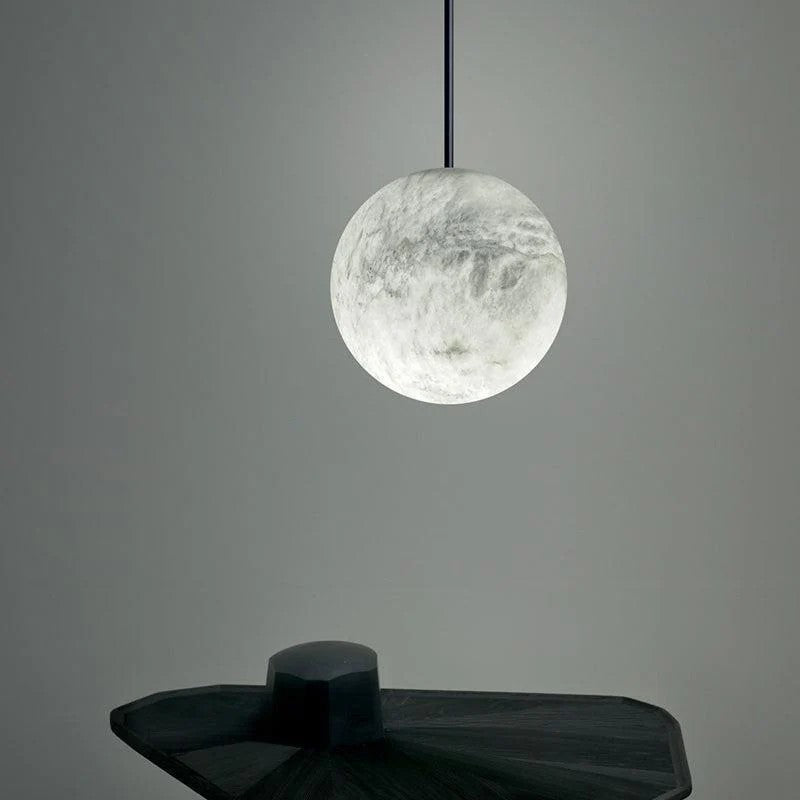 The Lunar Glow Collection features soft-glowing alabaster spheres (with natural veining) suspended in customizable clusters, paired with sleek metal canopies. Warm light diffuses through the milky stone, mimicking a moonlit glow—blending organic texture with minimalist elegance. Available in varied cluster sizes, it elevates dining spaces, foyers or open-concept rooms, adding a serene, luminous focal point to contemporary American interiors.