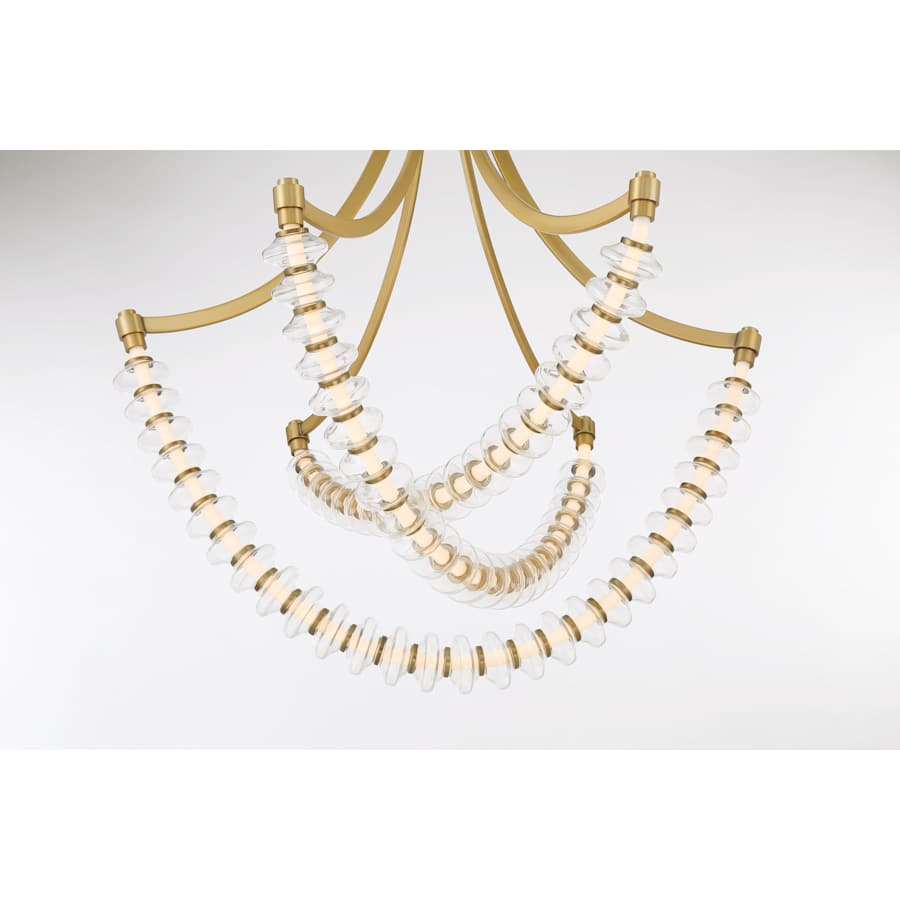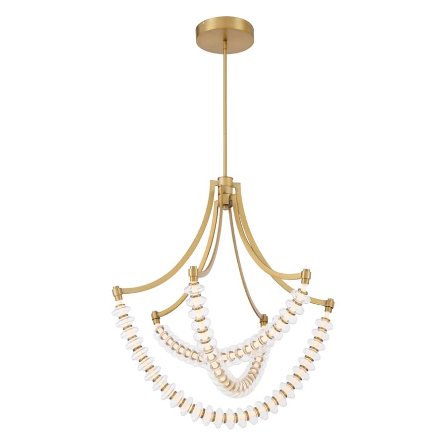 The Golden Beaded Ring Glass Chandelier features cascading strands of frosted glass discs suspended from a curved, warm brass frame. Soft light diffuses through the translucent “pearls,” blending vintage-inspired elegance with modern warmth. Perfect for dining rooms, entryways, or bedroom retreats, this piece adds a luminous, graceful focal point to contemporary American interiors.