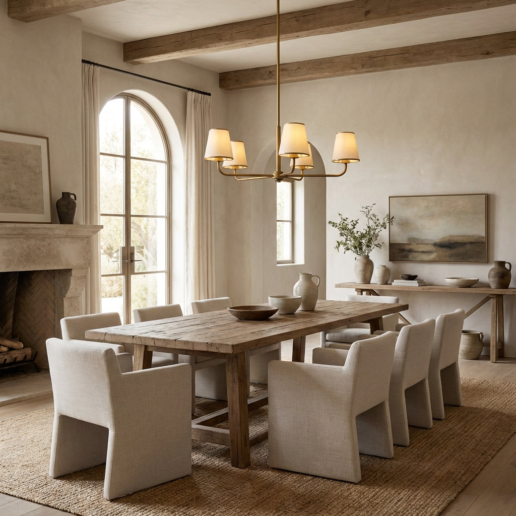 Infuse your home with understated elegance using the Aria Linen Shade Lighting Collection. Featuring soft, textured linen shades and slender metal frames in warm finishes, this curated line includes linear chandeliers, pendants, and sconces. Each piece casts a gentle, diffused glow, perfect for elevating dining rooms, bedrooms, or hallways with a refined, transitional aesthetic.